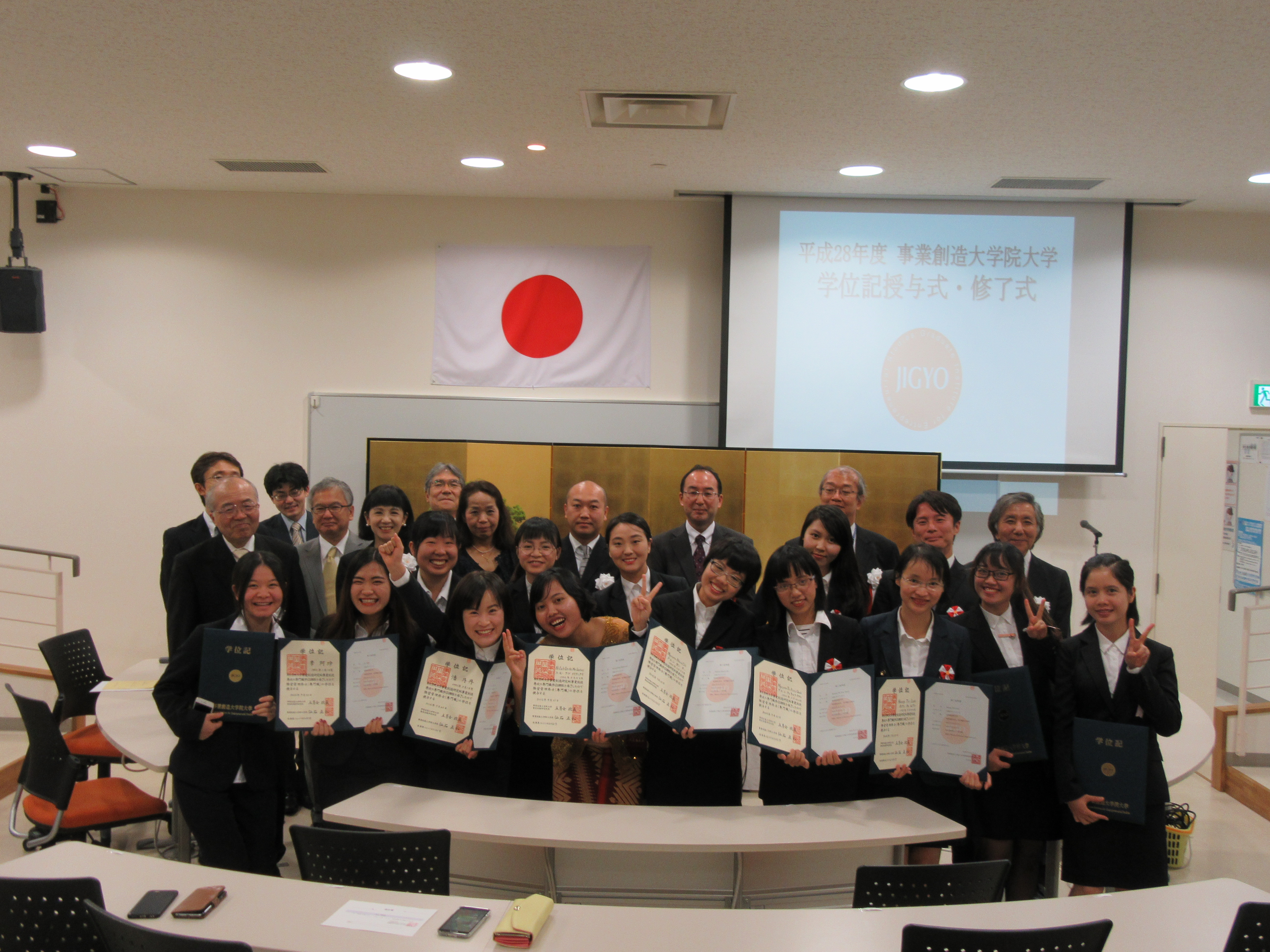 2016年9月23日(金)、事業創造大学院大学において秋学期学位記授与式・修了式が挙行されました。日本人をはじめ、中国、ベトナム、インドネシアの留学生を含む14名の方にMBA経営管理修士(専門職)が授与されました。