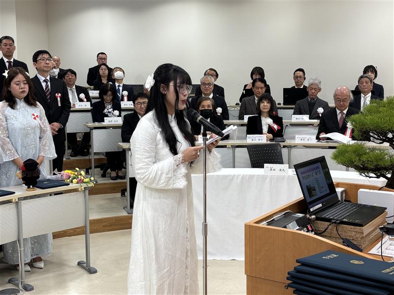 修了生代表のファム・ティ・トゥエット・マイさんが答辞を述べられました。