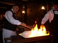 一番おいしかったのは、スズキの周りを塩で固めてまわりを火であぶった後に、塩を割って、中味だけ食べた料理です。塩気は全くせず、実に美味でした!